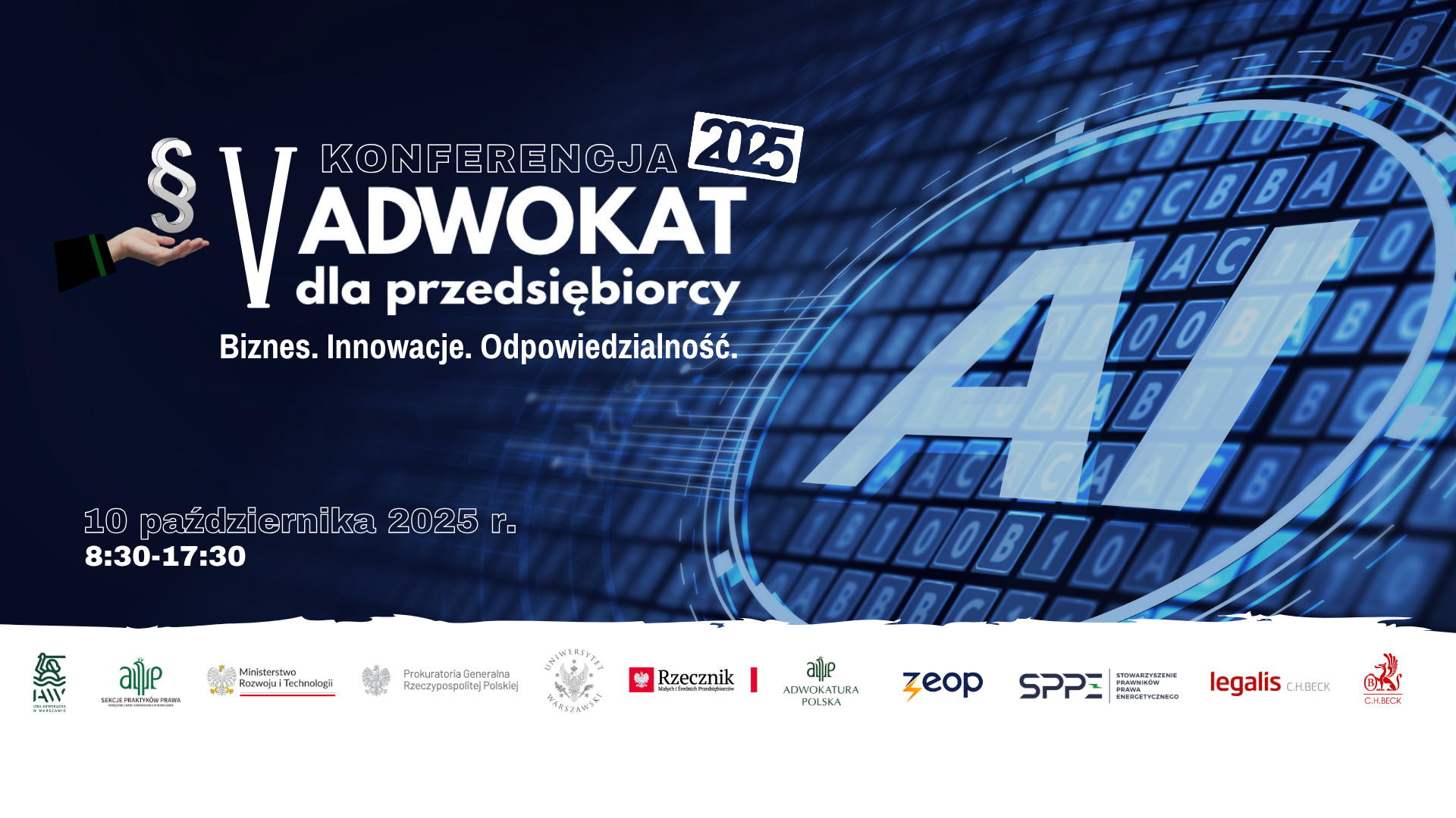 Już jutro, 10 października 2025 r., odbędzie się V edycja konferencji organizowanej przez Okręgową Radę Adwokacką w Warszawie – „Adwokat dla Przedsiębiorcy. Biznes. Innowacje. Odpowiedzialność.” w całości poświęcona prawnych aspektom rozwoju sztucznej inteligencji.